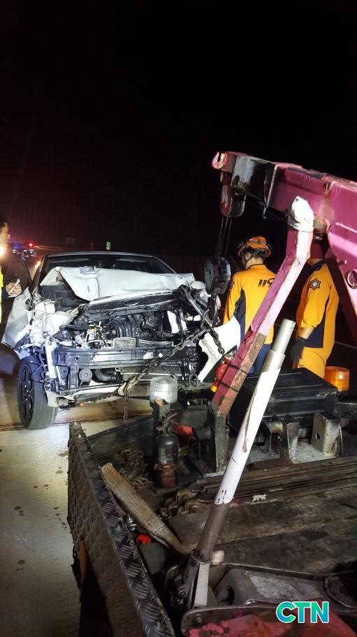 ÇöÀå¿¡ µµÂøÇÑ 119±¸Á¶´ë¿øµéÀº ±¸±Þ´ë¿ø°ú ÇÔ²² ±¸Á¶ÇÏ¿©, °¡µå·¹Àϰú Ãæµ¹ÇÑ ½Â¿ëÂ÷ ¿ä±¸Á¶ÀÚ 1¸í(Çã◯◯/³²/35¼¼)À» ¾ÈÀüÇÏ°Ô ±¸Á¶ÇÑ ÈÄ, ÇöÀåÀÀ±Þóġ ÈÄ º´¿øÀ¸·Î À̼ÛÇß´Ù.