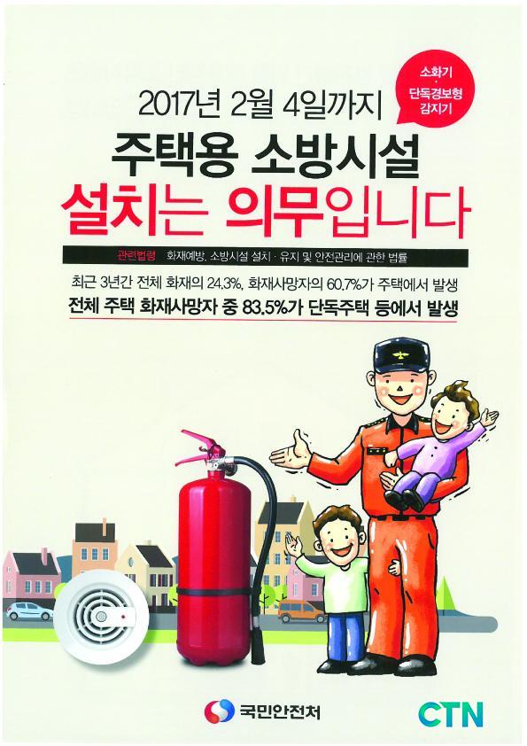 ÀÌ´Â 2011³â 8¿ù 4ÀÏ °³Á¤µÈ ¡º¼Ò¹æ½Ã¼³ ¼³Ä¡¡¤À¯Áö ¹× ¾ÈÀü°ü¸®¿¡ °üÇÑ ¹ý·ü¡»¿¡ µû¶ó 2012³â 2¿ù 5ÀϺÎÅÍ Àǹ«ÀûÀ¸·Î ÁÖÅà ³» ±âÃʼҹæ½Ã¼³À» ¼³Ä¡ÇØ¾ß Çϸç, ±âÁ¸ ÁÖÅÃÀÇ °æ¿ì¿¡µµ 2017³â 2¿ù 4ÀϱîÁö ¼Òȱâ¿Í ´Üµ¶°æº¸Çü°¨Áö±â ¼³Ä¡¸¦ ¿Ï·áÇØ¾ß ÇÑ´Ù.