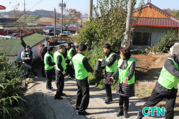 [¼Ãµ/ctn]ÀÓÁ¾º¹ ±âÀÚ = Ãæ³² ¼Ãµ°æÂû¼(¼Àå ÀüÁØ¿)´Â 9ÀÏ ¿ÀÀü Ãß¿î ³¯¾¾¿¡µµ ¾î·Æ°Ô »ýȰÇϰí ÀÖ´Â Áö¿ª ¼Ò¿Ü°èÃþÀ» ã¾Æ »ç¶ûÀÇ ¿¬Åº ¹è´ÞÀ» Çϸç Áö¿ªÁֹΰú µû¶æÇÑ Á¤À» ³ª´©´Â ½Ã°£À» °¡Á³´Ù.