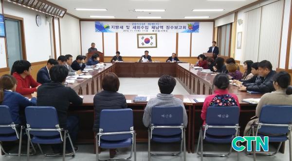 < Áö³ 17ÀÏ ¿¹»êÀ¾»ç¹«¼Ò ȸÀǽǿ¡¼ ¿¸° Áö¹æ¼¼ ¹× ¼¼¿Ü¼öÀÔ Ã¼³³¾× ¡¼öº¸°íȸ¿¡¼ Âü¼®ÀÚµéÀÌ Ã¼³³¾× ¡¼ö ´ëÃ¥¿¡ ´ëÇØ ³íÀÇÇϰí ÀÖ´Ù.>