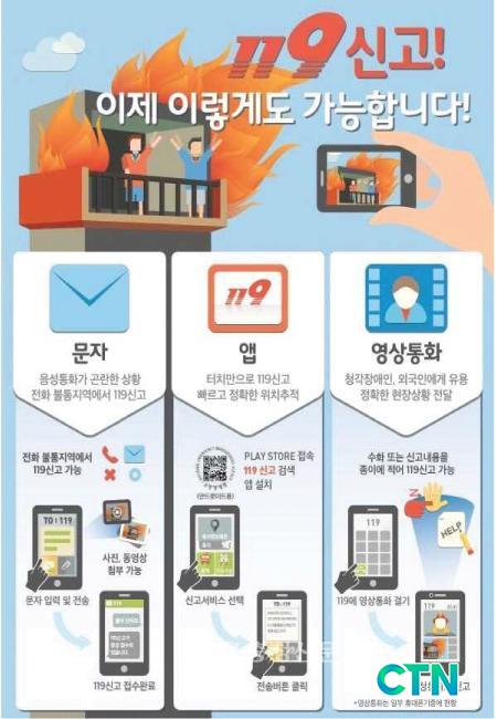 ¸ÕÀú ¹®ÀڽŰíÀÇ °æ¿ì, 119 ¹øÈ£·Î ¹®ÀÚ ÀÔ·Â ÈÄ Àü¼ÛÇÏ¸é ½Å°í°¡ Á¢¼öµÇ¸ç, »çÁø°ú µ¿¿µ»óµµ ÷ºÎ °¡´ÉÇÏ´Ù.