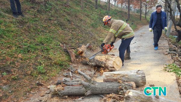 ¿¹»ê¼Ò¹æ¼ 119±¸Á¶´ë °ü°èÀÚ´Â "³ª¹« Á¦°ÅÀÛ¾÷Àº ³ª¹«ÀÇ ºñÀǵµÀûÀÎ ¹æÇâÀ¸·Î ¾²·¯Áü, ÀÛ¾÷ÀÚ ºÎÁÖÀÇ µî Ç×»ó ¾ÈÀü»ç°í À§ÇèÀÌ Å« ÀÛ¾÷À̹ǷΠ°³ÀÎ ´Üµ¶ ÀÛ¾÷À» ÇÇÇÏ°í Æ¯È÷ Àü±â¾ÈÀü°ú °ü·ÃµÈ °æ¿ì¿¡´Â ¹Ýµå½Ã ÇÑÀüÀ̳ª 119¿¡ ½Å°íÇÏ¿© ¾ÈÀüÁ¶Ä¡¸¦ ¹ÞÀ» ¼ö ÀÖµµ·Ï ÇÏ¿©¾ßÇÑ´Ù"°í ¸»Çß´Ù.