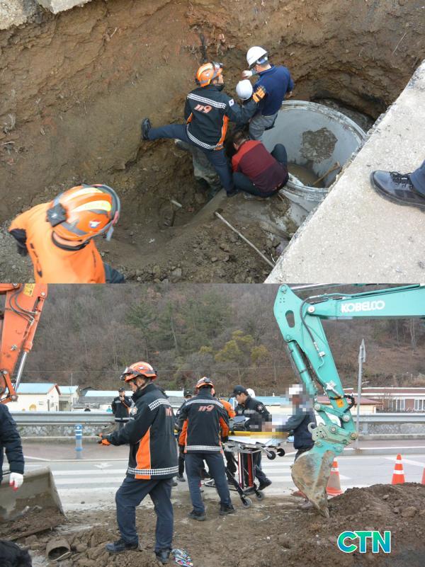 À̳¯ »ç°í´Â µµ·Î¸¦ µû¶ó Çϼö°ü ¸Å¼³ ÀÛ¾÷ Áß Åä»ç°¡ ¹«³ÊÁö¸ç ÀκΠ1¸íÀÌ ¸Å¸ôµÈ »ç°í·Î ÇöÀå¿¡ µµÂøÇÑ 119´ë¿øµéÀº Åä»ç¸¦ Á¦°Å ÈÄ ¸Å¸ôµÇ¾î ÀÖ´Â ÀÛ¾÷ÀÚ 1¸í(¹Ú〇〇/³²)À» ±¸Á¶ÇØ, ÇöÀåÀÀ±Þóġ ÈÄ º´¿øÀ¸·Î À̼ÛÇß´Ù.