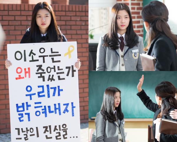 »çÁø ¼Ó ±èÇö¼ö´Â ¶Ò½É ÀÖ´Â ´«ºûÀ¸·Î Á¤±¹±³ ±³¹®¾Õ¿¡ ¼¼ ÇÇÄÏ ½ÃÀ§¸¦ Çϰí ÀÖ´Ù. 'À̼ҿì´Â ¿Ö Á×¾ú´Â°¡. ¿ì¸®°¡ ¹àÇô³»ÀÚ ±× ³¯ÀÇ Áø½ÇÀ»'À̶ó´Â ±¸È£°¡ ÀûÀÎ ÇÇÄÏÀ» µé°í ¼± ±èÇö¼ö´Â Áø½ÇÀ» À§ÇÑ ±³³» ÀçÆÇÀÇ Çʿ伺À» È£¼ÒÇϰí ÀÖ´Ù. ÇÇÄÏ ¼Ó ³ë¶õ ¸®º»Àº ¿ì¸®ÀÇ Çö½ÇÀ» ´ã¾Æ³»´Â ¸Þ½ÃÁöÀÇ °·ÄÇÔÀ» ´õÇÑ´Ù. ÇÔ²² °ø°³µÈ »çÁø¿¡¼ Ä«¸®½º¸¶ ³ÑÄ¡´Â ´«ºûÀ¸·Î °ÉÅ©·¯½¬ ¸Å·ÂÀ» ¹ß»êÇÏ´Â ±èÇö¼ö´Â ¿ÀÀ±È«(ÇлýÁÖÀÓ ¿ª)¿¡°Ô »´À» ¸ÂÀ¸¸é¼µµ Èçµé¸®Áö ¾Ê´Â °´Ü ÀÖ´Â ¸ð½ÀÀ¸·Î ±äÀå°¨À» ³ôÀ̰í ÀÖ´Ù.