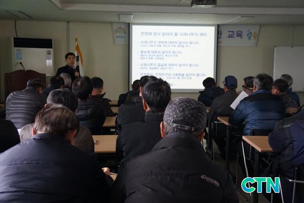 <Áö³ 23ÀÏ ³ó¾÷±â¼ú¼¾ÅÍ ¼¼¹Ì³ª½Ç¿¡¼ ¿¸° ¿£ºñ»ç°ú¹Ý ³ó¾÷ÀÎ °ø¸ð±³À°¿¡¼ Á¤Çý¿õ °»ç°¡ ±³À°À» ÁøÇàÇϰí ÀÖ´Ù.>