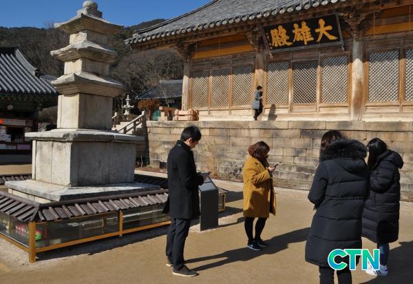 <´ö»ê¸é¿¡ À§Ä¡ÇÑ ¼ö´ö»ç ³» ´ë¿õÀü ¾Õ¿¡¼ °ü±¤°´µéÀÌ Æ÷Äϸó°í¸¦ Áñ±â°í ÀÖ´Ù.>