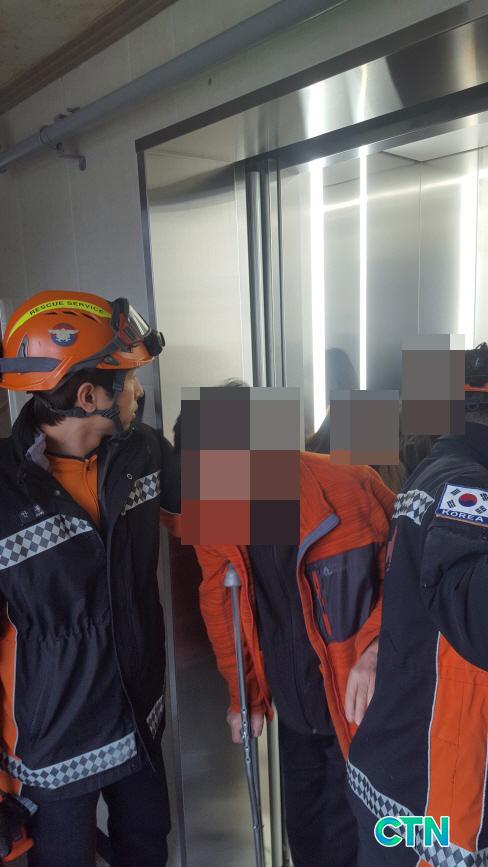 ÇöÀå¿¡ µµÂøÇÑ 119±¸Á¶´ë¿øµéÀº ½Â°±â ¸¶½ºÅÍ۸¦ ÀÌ¿ëÇÏ¿©, 3Ãþ¿¡¼ ¸ØÃç °¤Çô ÀÖ´ø ½Â°±â ³»ºÎ ¿ä±¸Á¶ÀÚ 4¸í(¾ç◯◯/60¼¼/³² µî)À» ¾ÈÀüÇÏ°Ô ±¸Á¶Çß´Ù.