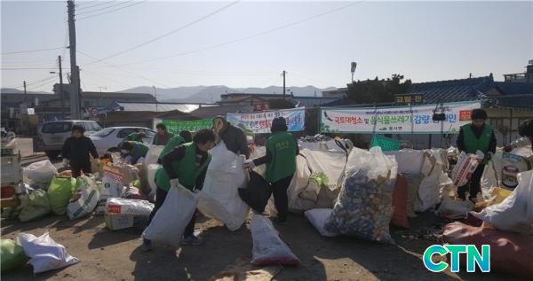 ÇùÀÇȸ¿øµéÀº ³óÇѱ⿡ ³í°ú ¹ç, ÇÏõ, µµ·Îº¯¿¡ ¹æÄ¡µÈ °Ü¿ïö ¿µ³ó¾²·¹±â ¼ö°Å´Â ¹°·Ð 26°³ ¸¶À»º°·Î ´ëû¼Ò¸¦ ½Ç½ÃÇØ ȯ°æ¿À¿°ÀÇ ÁÖ¹üÀÎ Æóºñ´Ò ³ó¾à ºóº´, ÇÃ¶ó½ºÆ½ µî°ú ÁýÁý¸¶´Ù »ç¿ëÇÏÁö ¾Ê´Â °íö, ÆóÁö, Çå¿Ê µî ÀçȰ¿ëǰÀ» ¼ö°ÅÇØ ¾à 30ÅæÀÇ ¼ûÀºÀÚ¿øÀ» ¼öÁýÇß´Ù.