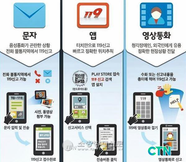 '119´Ù¸Åü ½Å°í¼ºñ½º'¶õ Á¾Àü Åëȸ¸À¸·Î °¡´ÉÇß´ø ½Å°í ¹æ½ÄÀ» 119»óȲ½Ç ¼öº¸ÀÚ¿Í ½Å°íÀÚ°£ ¿µ»óÅëÈ´Â ¹°·Ð ¹®ÀÚ³ª ½º¸¶Æ®Æù ¾Û(APP-lication)À» ÅëÇØ¼µµ ½Å°í°¡ °¡´ÉÇÑ ¼ºñ½º·Î ¿Ü±¹ÀÎÀ̳ª û°¢ Àå¾ÖÀÎ µî ÀÇ»ç¼ÒÅëÀÌ ¾î·Æ°Å³ª À½¼ºÅëȰ¡ °ï¶õÇÑ °æ¿ì¿¡µµ ÀÀ±Þ »óȲÀ» Àü´Þ ÇÒ ¼ö ÀÖ´Â ¼ºñ½º¸¦ ¸»ÇÑ´Ù.