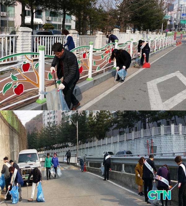 <Áö³ 17ÀÏ ±ºÃ» ±âȹ½Ç Á÷¿øµé°ú °³¹ßÀ§¿øÈ¸ ȸ¿øµéÀÌ ÁÖ¿ä µµ·Îº¯¿¡¼ ȯ°æÁ¤È Ȱµ¿À» ÆîÄ¡°í ÀÖ´Ù.>