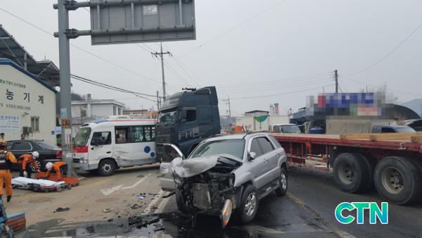 À̳¯ »ç°í·Î SUV, Æ®·¹ÀÏ·¯, ¸¶À»¹ö½º µîÀÌ Ãßµ¹ÇÏ¿© ±è¸ð(³²/70¼¼)¾¾ µî 8¸íÀÌ ºÎ»óÀ» ÀÔ¾î Àαٺ´¿øÀ¸·Î À̼ÛÁ¶Ä¡Çß´Ù.