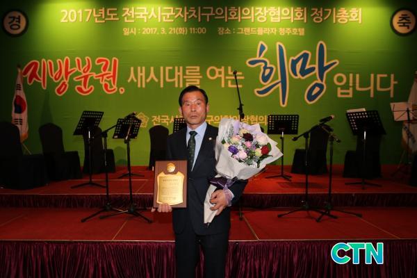 [¿¹»ê/ctn]ÃÖ¿ë°ü ±âÀÚ = ±Ç±¹»ó ¿¹»ê±ºÀÇȸ ÀÇÀåÀÌ Áö³ 21ÀÏ ±×·£µåÇöóÀÚ Ã»ÁÖÈ£ÅÚ¿¡¼ °³ÃÖµÈ 2017³âµµ Àü±¹ ½Ã±ºÀÚÄ¡±¸ÀÇȸ ÀÇÀåÇùÀÇȸ Á¤±âÃÑȸ¿¡¼ ½Å·Ú¹Þ´Â ÀÇȸ ±¸Çö°ú Áö¿ª¹ßÀü ¼±µµÀÇ °ø·Î¸¦ ÀÎÁ¤¹Þ¾Æ Áö¹æÀÇÁ¤ºÀ»ç´ë»óÀ» ¼ö»óÇÏ´Â ¿µ¿¹¸¦ ¾È¾Ò´Ù.