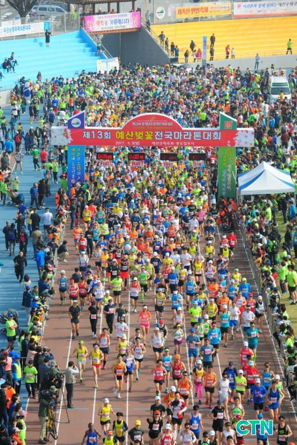 [¿¹»ê/ctn]ÃÖ¿ë°ü ±âÀÚ = È»çÇÑ º¢²É±æÀ» µû¶ó ÆîÃÄÁø 'Á¦13ȸ ¿¹»êº¢²É Àü±¹¸¶¶óÅæ´ëȸ'°¡ Áö³ 9ÀÏ ¿¹»êÁ¾ÇտÀå°ú ±º ÀÏ¿ø¿¡¼ ¼º°øÀûÀ¸·Î °³ÃֵƴÙ.