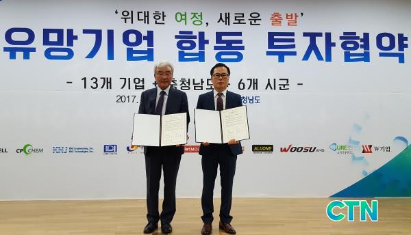 < ¿¹»ê±ºÀº 22ÀÏ Ãæ³²µµÃ» ´ëȸÀǽǿ¡¼ ¿¸° ÇÕµ¿ ÅõÀÚÇù¾à ü°á½Ä¿¡¼ ¾Ë·ç¹Ì´½ ¾ÐÃâ ¹× ¾Ð¿¬À» Á¦Á¶ÇÏ´Â À¯¸Á Áß¼Ò±â¾÷°ú ¿¹»êÀϹݻê¾÷´ÜÁö ½Å¼³ÅõÀÚ¸¦ À§ÇÑ ÅõÀÚÇù¾àÀ» ü°áÇϰí Á¶µ¿±Ô ºÎ±º¼ö°¡ Áß¼Ò±â¾÷ ´ëÇ¥¿Í ±â³äÃÔ¿µÀ» Çϰí ÀÖ´Ù.>