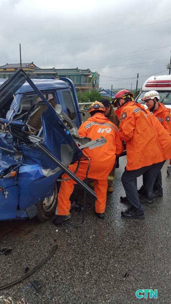 À̳¯ »ç°í´Â ȹ°Â÷¿Í 1Åæ Æ®·°ÀÌ Ãßµ¹ÇÑ »óȲÀ¸·Î ÇöÀå¿¡ µµÂøÇÑ 119 ±¸Á¶´ë¿øµéÀº 1Åæ Æ®·° ¿ä±¸Á¶ÀÚ ½Å¡Û¡Û(³²,67)¾¾¸¦ ½Å¼ÓÈ÷±¸Á¶ÇØ ±¸±Þ´ë¿¡ ÀÎ°è º´¿ø À̼ÛÁ¶Çß´Ù.