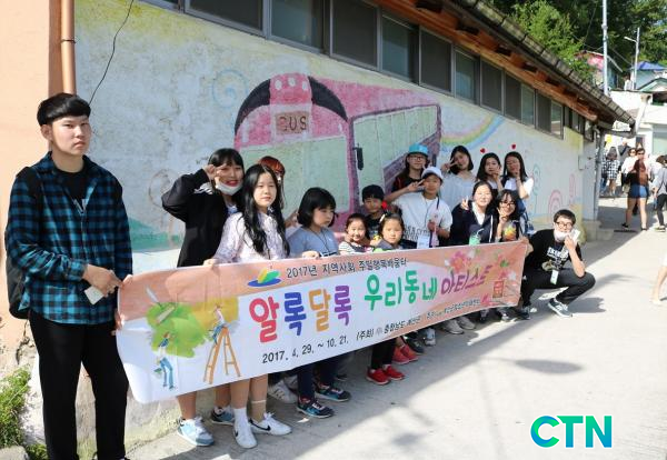 | <¿¹»ê±ºÃ»¼Ò³â¹Ì·¡¼¾ÅͰ¡ ¿î¿µÇÏ´Â ¿ì¸®µ¿³× ¾ÆÆ¼½ºÆ® ÇÁ·Î±×·¥¿¡ Âü¿©ÇÑ ÇлýµéÀÌ º®È¸¦ ±×¸®°í ±â³äÃÔ¿µÀ» Çϰí ÀÖ´Ù.> |
