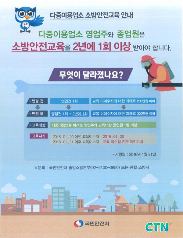 ±âÁ¸ ´ÙÁßÀÌ¿ë¾÷¼Ò ¼Ò¹æ¾ÈÀü±³À°Àº ¿µ¾÷À» ½ÃÀÛÇϱâ Àü ÃÖÃÊ 1ȸ¸¸ À̼öÇÏ¸é µÆÀ¸³ª Áö³ÇØ °³Á¤µÈ º¸¼ö±³À° ±ÔÁ¤¿¡ µû¶ó ¿µ¾÷ÁÖ¿Í Á¾¾÷¿ø 1¸í ÀÌ»óÀº ¿µ¾÷°³½ÃÀü ±³À°»Ó¸¸ ¾Æ´Ï¶ó 2³â¿¡ 1ȸ ÀÌ»ó Ãß°¡·Î º¸¼ö±³À°À» ¹Þ¾Æ¾ß Çϰí À§¹Ý½Ã¿¡´Â 300¸¸¿ø ÀÌÇÏÀǰúÅ·á óºÐÀ» ¹Þ°Ô µÈ´Ù.