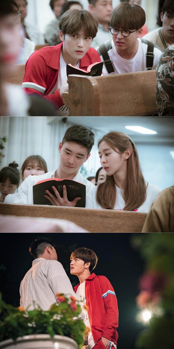 ±×·± °¡¿îµ¥ °ø°³ µÈ »çÁø ¼Ó ±èÀçÁßÀÇ ¸ð½ÀÀÌ ±Ã±ÝÁõÀ» À¯¹ßÇÑ´Ù. ÇØ´ç Àå¸éÀº °íµîÇб³ ½ÃÀý·Î µ¹¾Æ°£ ºÀÇÊÀÌ °ú°Å¿¡ ¹ß»ýÇÑ ±¼¿åÀû »ç°Ç¿¡ ´ëÇÑ ¸®º¥Áö Ç÷Åõ(?)¸¦ ¹úÀÌ´Â Àå¸é. ±× ½ÃÀý ù»ç¶û ±³È¸ ¿Àºü¿Í ´ÙÁ¤ÇÑ ºÐÀ§±â¸¦ dz±â´Â ¼öÁøÀÌÀÇ ¸ð½ÀÀ» ÁöÄѺ¸´Â ±èÀçÁßÀÇ ¾ÈÀýºÎÀý '¸Û¹¶¹Ì' ³ÑÄ¡´Â ¸ð½ÀÀÌ ¿ôÀ½À» À¯¹ßÇÑ´Ù. À̾î ÇÔ²² °ø°³µÈ ¶Ç ´Ù¸¥ »çÁø ¼Ó¿¡´Â ±³È¸ ¿Àºü¿Í ºÒ²É Æ¢´Â ´«½Î¿òÀ» ÆîÄ¡°í ÀÖ´Â ±èÀçÁßÀÇ ¸ð½ÀÀÌ Æ÷ÂøµÅ ±Ã±ÝÁõÀ» ÀھƳ½´Ù. »ó´ë¸¦ ¹«¼¿î ´«À¸·Î ³ë·Áº¸°í ÀÖ´Â ±èÀçÁßÀÇ ¸ð½À¿¡¼ 'ÇÊßæÇÊÞÝ'ÀÇ °¢¿À°¡ ´À²¸Áø´Ù. °ú¿¬ À¯À̸¦ »çÀÌ¿¡ µÐ ºÀÇʰú ±³È¸¿ÀºüÀÇ ÆØÆØÇÑ ½Å°æÀüÀÇ ÀÌÀ¯´Â ¹«¾ùÀÎÁö, ±×¸®°í ÀÌ ¼³¿åÀüÀÌ Çö½ÇÀ» ¾î¶»°Ô ¹Ù²ã³õÀ»Áö °ü½ÉÀÌ ¸ð¾ÆÁø´Ù.