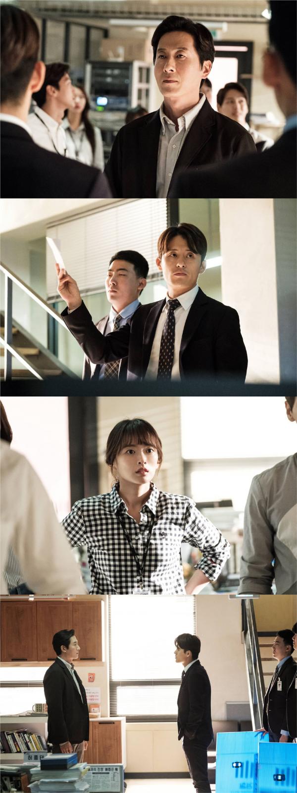 '¾Æ¸£°ï'ÀÇ ¾ç´ë ÃàÀÎ ±è¹éÁø°ú ½ÅöÀÇ À§±â·Î ÆÀ ÀÚü°¡ Èçµé¸± »óȲ¿¡ óÇÑ °¡¿îµ¥ °ø°³µÈ »çÁøÀº ±×¾ß¸»·Î À§±â°¨À» °íÁ¶½ÃŲ´Ù. ¾Ð¼ö¼ö»ö ¿µÀåÀ» ¹Þ¾Æ '¾Æ¸£°ï' »ç¹«½Ç¿¡ µéÀÌ´ÚÄ£ °Ë»ç(ÃÖÀç¿õ ºÐ)°¡ ±è¹éÁø°ú ÆØÆØÇÏ°Ô ´ëÄ¡ÇÏ¸ç ±äÀå°¨ÀÇ ¼öÀ§¸¦ ³ôÀδÙ. ¹Ìµ¿µµ ¾øÀÌ ±»Àº Ç¥Á¤¸¸À¸·Îµµ ºÐ³ë°¡ °í½º¶õÈ÷ ÀüÇØÁö´Â ±è¹éÁøÀÌ ¸Í·ÄÈ÷ ¸·¾Æ¼Áö¸¸ ¾Æ¶û°÷ÇÏÁö ¾Ê°í »ç¹«½Ç °÷°÷À» µÚÁø´Ù. À̸¦ ¹Ù¶óº¸´Â ÀÌ¿¬È(õ¿ìÈñ ºÐ)ÀÇ ±äÀå°¨ ¾î¸° Ç¥Á¤ÀÌ ½É»óÄ¡ ¾ÊÀº »óȲÀ» ¿À·ÔÀÌ Àü´ÞÇÑ´Ù.