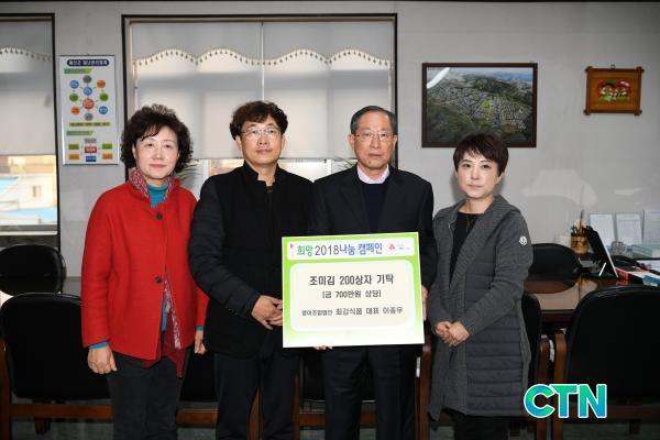 ¿µ¾îÁ¶ÇÕ¹ýÀÎ ÃÖ°½Äǰ(´ëÇ¥ ÀÌÁ¾¿ì)Àº Áö³ 22ÀÏ Àú¼ÒµæÃþ¿¡°Ô Àü´ÞÇØ ´Þ¶ó¸ç ±è 200 »óÀÚ(½Ã°¡ 700¸¸¿ø)¸¦ ±âŹÇß´Ù. Áö³ÇØ¿¡µµ ±è 300»óÀÚ¸¦ ±âŹÇÏ´Â µî ÇØ¸¶´Ù ¾î·Á¿î ÀÌ¿ôÀ» À§ÇØ ²ÙÁØÇÑ ÀÌ¿ô»ç¶ûÀ» ½ÇõÇϰí ÀÖ´Ù.