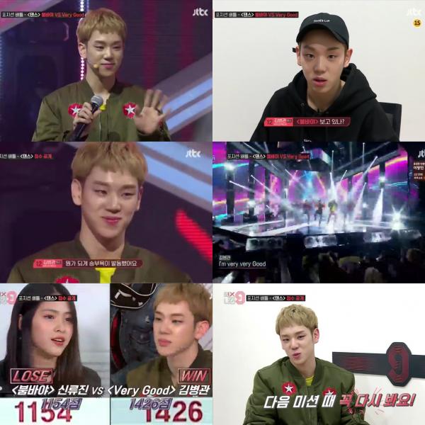 ±èº´°üÀº Æ÷Áö¼Ç ¹èƲ ¹«´ë¿¡¼ ´í½º Æ÷Áö¼Ç ºí¶ôºñÀÇ 'º£¸®±Â'À» °í¸£¸ç 'ºÕ¹Ù¾ß'¸¦ °í¸¥ JYP ½Å·ùÁø°úÀÇ ½Å°æÀüÀ» ¿¹°íÇß´Ù. ¿¬½À °úÁ¤¿¡¼ Á÷Á¢ ¾È¹« ±¸¼ºÀ» ¸ÃÀº ±èº´°üÀº ¹«ÇÑ ±àÁ¤ ¸Å·ÂÀ¸·Î ÆÀÀ» À̲ø¾ú´Ù. Æ®·¹ÀÌ³Ê ±Ç¿µµæÀÇ Áß°£ Á¡°Ë ÀÌÈÄ ¿©ÀÚ ÆÀ°úÀÇ ½Â»êÀ» ¹¯´Â Áú¹®¿¡¼µµ "³ÊÈñ ÆÀÀº ¾îµð¶û ºÙ¾îµµ ÀÌ±æ ¼ö ÀÖ´Ù"¶ó´Â ±ØÂùÀ» ¹ÞÀ¸¸ç ´õ¿í ±â´ë°¨À» ¸ð¾Ò´Ù. ÀÌ¾î ¼ö¶õµµ "±èº´°üÀ̶ó´Â Ä£±¸°¡ ´«¿¡ ¶è´Ù. °¢ ȸ»çÀÇ ¿¡À̽º°¡ ¸ð¿© ÀÖ´Â °Í °°Àº ÆÀÀÌ´Ù"¶ó°í ĪÂùÇß´Ù.