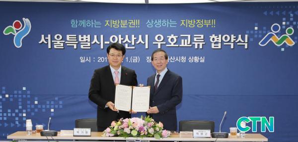 [¾Æ»ê/ctn] Á¶¼ºÂù±âÀÚ = ¾Æ»ê½Ã(½ÃÀå º¹±â¿Õ)¿Í ¼¿ïƯº°½Ã(½ÃÀå ¹Ú¿ø¼ø)°¡ Áö³ 1ÀÏ ¾Æ»ê½Ãû »óȲ½Ç¿¡¼ ¿ìÈ£±³·ùÇù¾àÀ» ü°áÇϰí, µÎ µµ½ÃÀÇ ¹ßÀü°ú ½Ã¹Î º¹¸® ÁõÁøÀ» À§ÇÑ ±³·ù․Çù·Â ÀÇÁö¸¦ ´ÙÁ³´Ù.