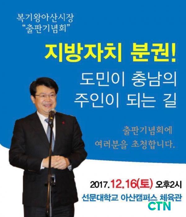 ´õºÒ¾î¹ÎÁÖ´çÀÇ º¹±â¿Õ Ãæ³² ¾Æ»ê½ÃÀåÀÌ 16ÀÏ ¼±¹®´ëÇб³¿¡¼ ÃâÆÇ±â³äȸ¸¦ ¿°í »ç½Ç»ó ³»³â 6¡¤13Áö¹æ¼±°Å¿¡¼ Ãæ³²µµÁö»ç µµÀü Çຸ¿¡ ³ª¼±´Ù. 2¼±ÀÇ º¹ ½ÃÀåÀº ³»³â Áö¹æ¼±°Å¸¦ ¾ÕµÎ°í ±×µ¿¾È "3¼± µµÀüÀ» ÇÏÁö ¾Ê°Ú´Ù"°í ¾ð±ÞÇØ »ç½Ç»ó Ãæ³²µµÁö»ç Ã⸶¸¦ ³»ºñÃÄ ¿Ô´Ù.
