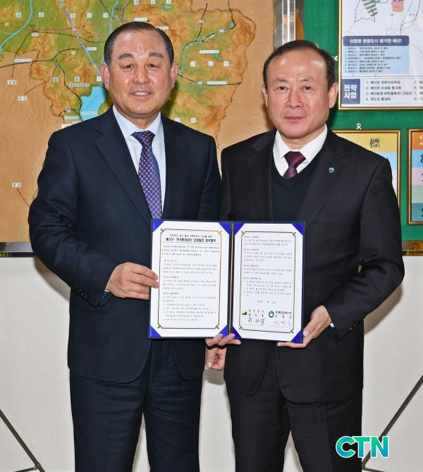 <¿¹»ê±ºÀº 11ÀÏ Çѱ¹È¯°æ°ø´Ü°ú Çϼöµµ½Ã¼³ ¼³Ä¡»ç¾÷ 7°Ç¿¡ ´ëÇØ À§¼öŹ Çù¾àÀ» ü°áÇß´Ù. »çÁøÀº Ȳ¼±ºÀ ¿¹»ê±º¼ö(»çÁø ¿ÞÂÊ)¿Í Çѱ¹È¯°æ°ø´Ü Àüº´¼º ÀÌ»çÀå>