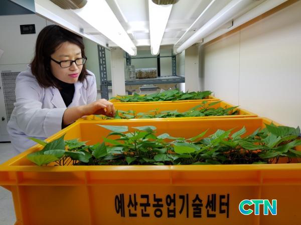 [¿¹»ê/ctn]ÃÖ¿ë°ü ±âÀÚ = ¿¹»ê±º³ó¾÷±â¼ú¼¾ÅÍ´Â ¼¾ÅÍ ³» ½ÇÁõ½ÃÇè À¯¸®¿Â½Ç¿¡¼ Á¶Á÷¹è¾ç °ÇÀü °í±¸¸¶ ¹¦ Àç¹è »ý»êÀ¸·Î ¹Ù»Û ÇϷ縦 º¸³»°í ÀÖ´Ù.