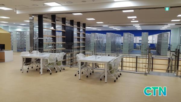 ¢º 7¹ÌÅÍ ³ôÀÌ 'º®¸é¼°¡'¿Í '¸®µùµ¥Å©' : Áß¾Óµµ¼°üÀÇ ·Îºñ¿¡ µé¾î¼¸é ÀÚÀ¯½º·¯¿î ºÐÀ§±â¿¡¼ Ã¥À» º¼ ¼ö ÀÖ´Â '¸®µùµ¥Å©'°¡ ÀÖ´Ù. ¶ÇÇÑ 2Ãþ Á¾ÇÕÀÚ·á½Ç¿¡ µé·¯¼¸é 7¹ÌÅÍ ³ôÀÌÀÇ º®¸é¼°¡°¡ ´«±æÀ» ²ö´Ù. À̰÷Àº 2ÃþÀÇ ÀÚ·á½Ç°ú 3ÃþÀÇ ÀÚ·á½ÇÀ» ³»ºÎ°è´ÜÀ» ÅëÇØ ÀÚÀ¯·Ó°Ô À̵¿ÇÒ ¼ö ÀÖµµ·Ï µÇ¾î ÀÖ´Ù. ¼ÕÀÌ ´ê´Â ÇÏ´Ü¿¡´Â ´ëÃâÀÌ °¡´ÉÇÑ µµ¼¸¦ ºñÄ¡ÇÏ°í »ó´ÜºÎ¿¡´Â Àü½Ã¿ë µµ¼°¡ ºñÄ¡µÉ ¿¹Á¤ÀÌ´Ù.