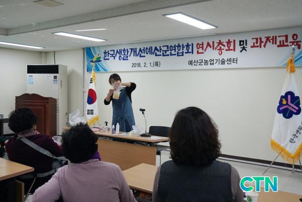<1ÀÏ ³ó¾÷±â¼ú¼¾ÅÍ ¼¼¹Ì³ª½Ç¿¡¼ Âü¼®ÀÚµéÀÌ ±è±âÁ¤ °»ç·ÎºÎÅÍ Ãµ¿¬ÈÀåǰ ¸¸µé±â °úÁ¦±³À°À» ¹Þ°í ÀÖ´Ù.>