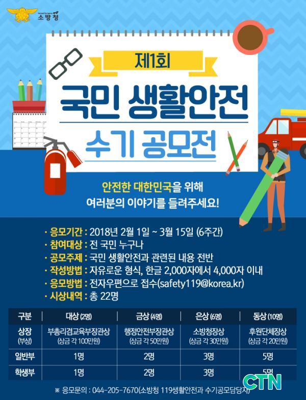 °ø¸ðÀü ½ÅûÀº Âü°¡½Åû¼¿Í ÀÀ¸ðÀÛǰÀ» ÇϳªÀÇ ÆÄÀÏ·Î ¸¸µé¾î À̸ÞÀÏ(safety119@korea.kr)·Î ½ÅûÇÏ¸é µÇ°í, °á°ú´Â 3¿ù 28ÀÏ ¼Ò¹æÃ» ȨÆäÀÌÁö¿¡ °ø°íµÇ¸ç ÀÚ¼¼ÇÑ »çÇ×Àº ¼Ò¹æÃ» 119»ýȰ¾ÈÀü°ú ¼ö±â°ø¸ð´ã´çÀÚ(044-205-7670)¿¡°Ô ¹®ÀÇÇÏ¸é µÈ´Ù.
