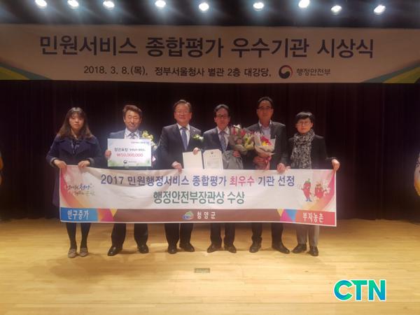 û¾ç±º, 2017³â ¹Î¿ø¼ºñ½ºÁ¾ÇÕÆò°¡ ÃÖ¿ì¼ö ±â°ü ¼±Á¤, ÇàÁ¤¾ÈÀüºÎÀå°ü»ó ¼ö»ó