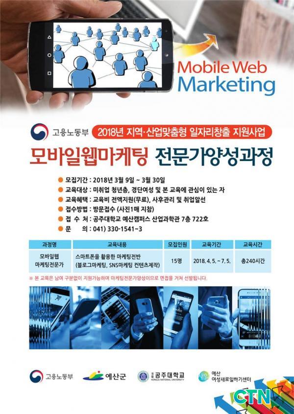 [¿¹»ê/ctn]ÃÖ¿ë°ü ±âÀÚ = ¿¹»ê±ºÀº °øÁÖ´ëÇб³(¿¹»ê¿©¼º»õÀϼ¾ÅÍ)¿Í Çù¾÷À¸·Î °í¿ë³ëµ¿ºÎ 2018Áö¿ª¡¤»ê¾÷¸ÂÃãÇü ÀÏÀÚ¸®Ã¢Ãâ Áö¿ø»ç¾÷ °ø¸ð¿¡ ¼±Á¤µÅ ¿À´Â 4¿ùºÎÅÍ '¸ð¹ÙÀÏÀ¥¸¶ÄÉÅÍ ¾ç¼º°úÁ¤'À» ½ÃÇàÇÑ´Ù.