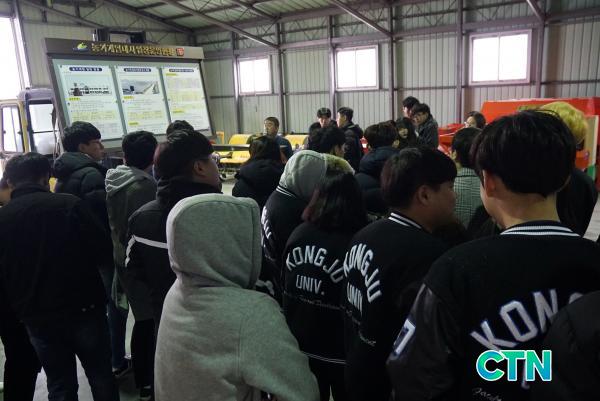 <°øÁÖ»ê¾÷´ëÇлýµéÀÌ ½Å¿ë»ê ³ó±â°èÆÀÀåÀ¸·ÎºÎÅÍ ¼³¸íÀ» µè°í ÀÖ´Ù.>