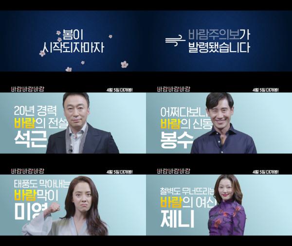 ¿À´Â 4¿ù 5ÀÏ °³ºÀÇÏ´Â ¿µÈ '¹Ù¶÷ ¹Ù¶÷ ¹Ù¶÷'ÀÌ ¿Ã º½ Àü±¹ ±ØÀå°¡¸¦ °Å¸ÇÒ 4ÀÎ 4ù¦ ij¸¯ÅÍÀÇ ¸Å·Â°ú À̵éÀÇ ½Å¹Ù¶÷ ÄÚ¹Í Äɹ̰¡ µ¸º¸ÀÌ´Â '¹Ù¶÷ÁÖÀǺ¸ ¿¹°íÆí'À» °ø°³Çß´Ù. ¿µÈ '¹Ù¶÷ ¹Ù¶÷ ¹Ù¶÷'Àº 20³â °æ·ÂÀ» ÀÚ¶ûÇÏ´Â '¹Ù¶÷'ÀÇ Àü¼³ '¼®±Ù'°ú µÚ´Ê°Ô '¹Ù¶÷'ÀÇ ¼¼°è¿¡ ÀÔ¹®ÇÏ°Ô µÈ ¸ÅÁ¦ 'ºÀ¼ö', ±×¸®°í SNS¿Í »ç¶û¿¡ ºüÁø 'ºÀ¼ö'ÀÇ ¾Æ³» '¹Ì¿µ' ¾Õ¿¡ Ä¡¸íÀûÀÎ ¸Å·ÂÀ» °¡Áø 'Á¦´Ï'°¡ ³ªÅ¸³ª¸é¼ °ÈÀâÀ» ¼ö ¾øÀÌ ²¿ÀÌ°Ô µÇ´Â »óȲÀ» ±×¸° ¾î¸¥µéÀ» À§ÇÑ Äڹ̵ð. À̹ø¿¡ °ø°³µÈ ¹Ù¶÷ÁÖÀǺ¸ ¿¹°íÆíÀº ÀÏÀÏ ±â»óij½ºÅÍ·Î ºÐÇÑ '¼®±Ù'(À̼º¹Î)ÀÇ "³¯¾¾ÀÔ´Ï´Ù. º½ÀÌ ½ÃÀÛµÇÀÚ¸¶ÀÚ ¹Ù¶÷ÁÖÀǺ¸°¡ ¹ß·ÉµÆ½À´Ï´Ù"¶ó´Â ¾È³» À½¼ºÀ¸·Î ½ÃÀÛµÅ, '¹Ù¶÷ ¹Ù¶÷ ¹Ù¶÷'ÀÌ ¿Ã º½ ±ØÀå°¡ °³ºÀ°ú ÇÔ²² ÀÏÀ¸Å³ '¹Ù¶÷'ÀÌ ¹«¾ùÀÏÁö À̸ñÀ» ´Ü¹ø¿¡ ÁýÁß½ÃŲ´Ù.