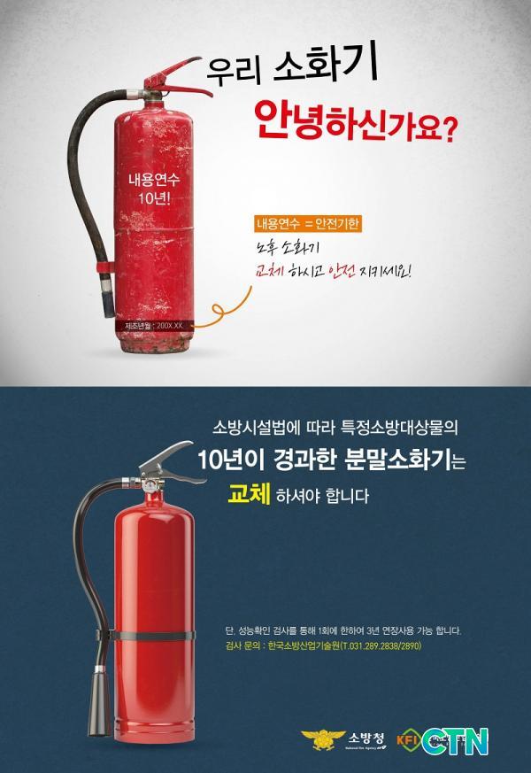 Áö³ 2017³â 1¿ù °³Á¤µÈ 'ÈÀ翹¹æ, ¼Ò¹æ½Ã¼³ ¼³Ä¡¡¤À¯Áö ¹× ¾ÈÀü°ü¸®¿¡ °üÇÑ ¹ý·ü'¿¡ µû¸£¸é ¼ÒȱâÀÇ ³»¿ë¿¬¼ö¸¦ 10³âÀ¸·Î ÇÏ¿©, 10³âÀÌ ³ÑÀº ¼Òȱâ´Â »õ·Î¿î ¼Òȱâ·Î ±³Ã¼ÇØ¾ß ÇÏÁö¸¸ ¿¹¿ÜÀûÀ¸·Î Çѱ¹¼Ò¹æ»ê¾÷±â¼ú¿ø(KFI)¿¡ ¼Òȱ⠼º´ÉÈ®ÀÎ °Ë»ç¸¦ ÀÇ·ÚÇØ ÇÕ°ÝÇϸé 1ȸ¿¡ ÇÑÇØ 3³â °£ Àç»ç¿ë ÇÒ ¼ö ÀÖ´Ù.