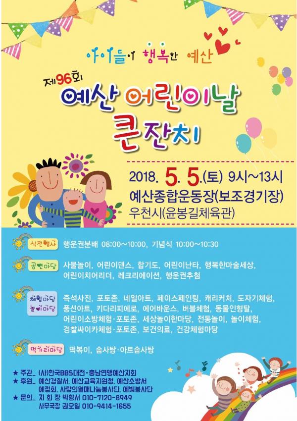 [¿¹»ê/ctn]ÃÖ¿ë°ü ±âÀÚ = ¿¹»ê±ºÀº 5¿ù 5ÀÏ 'Á¦96ȸ ¾î¸°À̳¯'À» ¸ÂÀÌÇØ ¿¹»êÁ¾ÇտÀå º¸Á¶°æ±âÀå¿¡¼ '¾ÆÀ̵éÀÌ ÇູÇÑ ¿¹»ê'À̶ó´Â ÁÖÁ¦·Î ¿ÀÀü 9½ÃºÎÅÍ ¿ÀÈÄ 1½Ã±îÁö 'Á¦96ȸ ¿¹»ê ¾î¸°À̳¯ Å«ÀÜÄ¡'¸¦ °³ÃÖÇÑ´Ù.