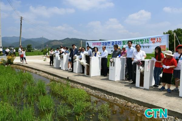 À̳¯ Ȳ»õ ÀÚ¿¬¹æ»ç Çà»ç´Â Ȳ¼±ºÀ ±º¼ö, ³²¿µ¼÷ Ȳ»õ»ýÅ¿¬±¸¿øÀå, ±ºÀÇ¿ø, µµÀÇ¿ø , ´ë¼ú¸éÀå, ¸¶À» ÁÖ¹Î, ´ë¼ú¡¤À¯¾î¡¤À̹æÃÊ Çлý µî 100¿© ¸íÀÌ Âü¼®ÇÑ °¡¿îµ¥ °³½Ä, ¹æ»çÄÉÀÌÁö Å×ÀÌÇÁ ÄÆÆÃ, ±â³äÃÔ¿µ ¼øÀ¸·Î ÁøÇàµÆ´Ù.