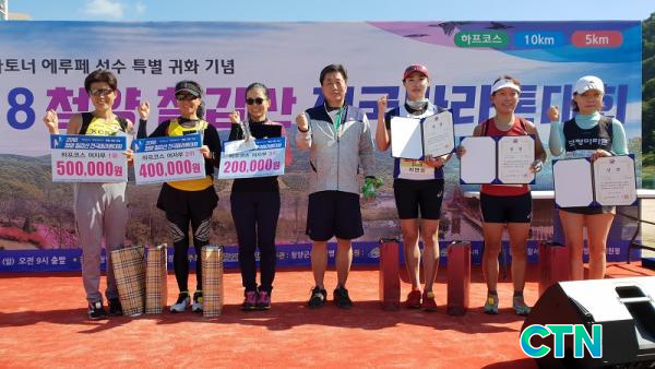 Çѱ¹¸¶¶óÅæÇùȸ°¡ ÁÖÃÖÇϰí û¾çÀ°»ó¿¬¸ÍÀÌ ÁÖ°üÇÑ À̹ø ´ëȸ´Â Áö³ 9¿ù 3ÀÏ Æ¯º°±ÍȰ¡ ½ÂÀεŠû¾ç±º¹ÎÀÌ µÈ ¼¼°èÀûÀÎ ¸¶¶óÅä³Ê ¿¡·çÆä(¿ÀÁÖÇÑ) ¼±¼öÀÇ Æ¯º°±Íȸ¦ ±â³äÇÏ´Â ´ëȸ·Î ÇÏÇÁÄÚ½º, 10km, 5km µî 3°³ ÄÚ½º·Î Ä¡·¯Á³´Ù.
