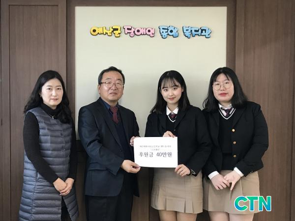 [¿¹»ê/ctn]ÃÖ¿ë°ü ±âÀÚ = Áö³ 22ÀÏ ¿¹»ê¿¹È¿©ÀÚ°íµîÇб³ ¹êµå µ¿¾Æ¸® '½ºÇÁ·¹ÀÌ'¿¡¼ Ȱµ¿ ÁßÀÎ ÇлýµéÀÌ ¿¹»ê±ºÀå¾ÖÀÎÁ¾ÇÕº¹Áö°üÀ» ¹æ¹®ÇØ ÈÄ¿ø±Ý 40¸¸¿øÀ» Àü´ÞÇß´Ù.
