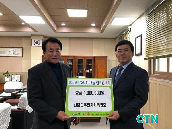 [¿¹»ê/ctn]ÃÖ¿ë°ü ±âÀÚ = ½Å¾Ï¸éÁÖ¹ÎÀÚÄ¡À§¿øÈ¸(À§¿øÀå À̺´¿î)°¡ 28ÀÏ ÇàÁ¤º¹Áö¼¾ÅÍ¿¡¼ 'Èñ¸Á 2019 ³ª´® Ä·ÆäÀÎ'ÀÇ ÀÏȯÀ¸·Î ÀÌ¿ôµ½±â ¼º±Ý 100¸¸ ¿øÀ» Àü´ÞÇß´Ù.