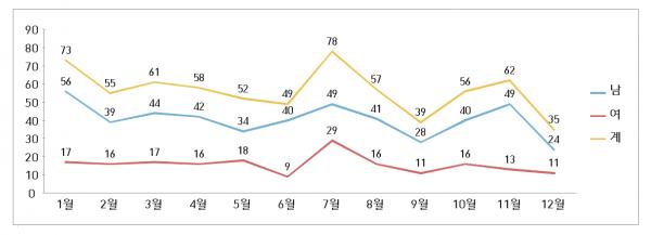 Ãæ³² û¾ç±º(±º¼ö ±èµ·°ï) ³ó¾÷±â¼ú¼¾ÅͰ¡ ¹ßÇ¥ÇÑ ¡®2018³â û¾çÁö¿ª ±Í³ó±ÍÃÌ »ó´ã Åë°èºÐ¼®¡¯¿¡ µû¸£¸é, Áö³ÇØ Àüü »ó´ãÀÚ 675¸í Áß 7¿ùÀÌ 78¸íÀ¸·Î °¡Àå ¸¹°í, 1¿ùÀÌ 73¸íÀ¸·Î µÚ¸¦ À̾ú´Ù. »ó´ãÀÚ ¼ö°¡ °¡Àå ÀûÀº 12¿ù(35¸í)¿¡ ºñÇØ 2¹è ÀÌ»ó ³ô´Ù.