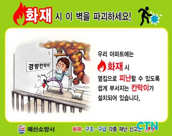 ¾ÆÆÄÆ® °æ·®Ä¸·ÀÌ´Â ÈÀç¹ß»ý ½Ã ÃâÀÔ±¸³ª °è´ÜÀ» ÀÌ¿ëÇÏ¿© Áö»óÀ¸·Î ´ëÇÇÇϱ⠾î·Á¿î °æ¿ì¸¦ ´ëºñÇØ ¿· ¼¼´ë·Î ÇdzÇϱâ À§ÇØ ¼®°íº¸µå·Î ¸¸µé¾î ³õÀº °£ÀÌ º®Ã¼·Î, µµ±¸ µîÀ» ÀÌ¿ëÇÏ¿© ºÎ¼ö¸é ÀÌ¿ôÁýÀ¸·Î ´ëÇÇÇÒ ¼ö ÀÖ´Ù.
