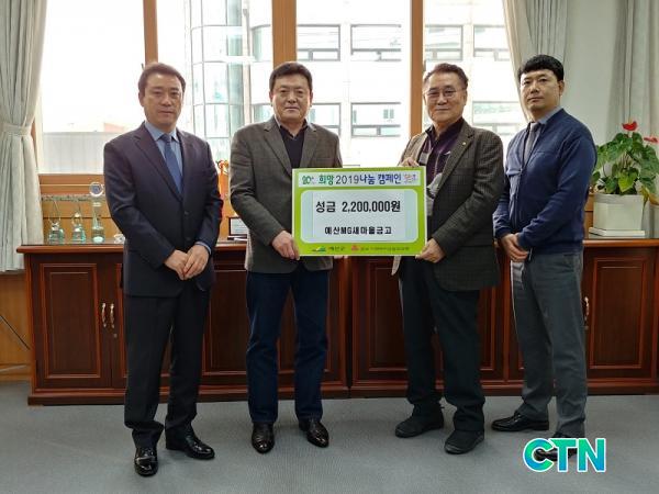 [¿¹»ê/ctn]ÃÖ¿ë°ü ±âÀÚ = ¿¹»êMG»õ¸¶À»±Ý°í(ÀÌ»çÀå Á¤°ü¿µ)°¡ 28ÀÏ ¿¹»êÀ¾ÇàÁ¤º¹Áö¼¾ÅÍ¿¡ '»ç¶ûÀÇ Á»µµ¸® ¿îµ¿'À» ÅëÇØ ¸ð±ÝÇÑ 220¸¸¿øÀ» º¹Áö»ç°¢Áö´ë¿¡ ÀÖ´Â ¾î·Á¿î ÀÌ¿ôÀ» À§ÇØ ½á´Þ¶ó¸ç ¼º±ÝÀ» ±âŹÇß´Ù.