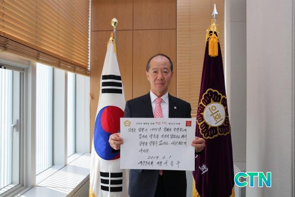 À̽±¸ ÀÇÀåÀº "3¡¤1 µ¶¸³¿îµ¿ 100ÁÖ³âÀ» ¸Â¾Æ ¶æ±íÀº Ä·ÆäÀο¡ µ¿ÂüÇÏ°Ô µÅ ¿µ±¤"À̶ó¸ç "Á¤ÀÇ·Ó°í ÇູÇÑ Á¶±¹ÀÇ µ¶¸³À» À§ÇØ ÇѸ¶À½À¸·Î ¹¶ÃÆ´ø ¾Ö±¹¼±¿µéÀÇ Çå½Å°ú Èñ»ýÁ¤½ÅÀ» Àý´ë ÀØÁö ¾Ê°Ú´Ù"°í ¸»Çß´Ù.
