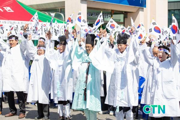 [û¾ç/ctn]ÀÓÁ¾º¹ ±âÀÚ = û¾ç±º ¿î°î3.1¸¸¼¼¿îµ¿ÀÇ 100ÁÖ³âÀ» ±â³äÇÏ´Â Á¦Çâ Çà»ç°¡ 2ÀÏ ¿î°î¸é»ç¹«¼Ò ±¤Àå¿¡¼ À¯°¡Á·, ±â°ü´ÜüÀå, ¿î°îÃÊ Çлý, ÁֹΠµî 100¿©¸íÀÌ Âü¼®ÇÑ °¡¿îµ¥ °ÅÇàµÆ´Ù.