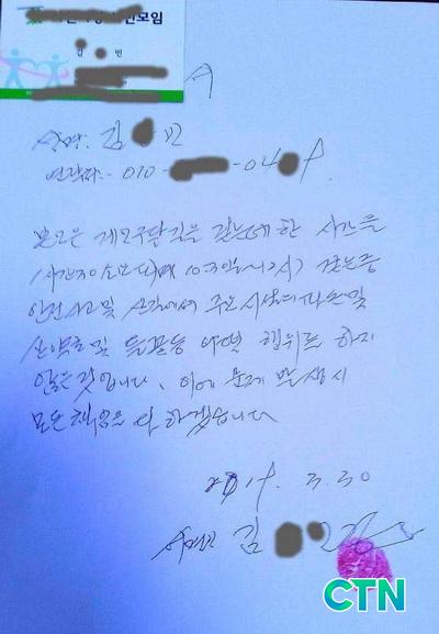 ½ÇÁ¦·Î A ¾¾°¡ ¹àÈ÷ °¢¼¿¡´Â 'Á¦Àα¸´Þ±æÀ» °È´Âµ¥ ¾ÈÀü»ç°í ¹× »ê±æ¿¡¼ ÁÖ¿ä½Ã¼³ÀÇ ÆÄ¼Õ ¹× »ê¾àÃÊ ¹× µé²É µî ¾î¶² ÇàÀ§¸¦ ÇÏÁö ¾ÊÀ» °ÍÀ̰í, ¹®Á¦ ¹ß»ý ½Ã ¸ðµç Ã¥ÀÓÀ» ´Ù ÇϰڴÙ'°í ÀÚÇÊ·Î ±â·ÏÇϰí ÀÚÇÊ »çÀο¡ À̾î ÁöÀå ³¯ÀεǾî ÀÖ´Ù.