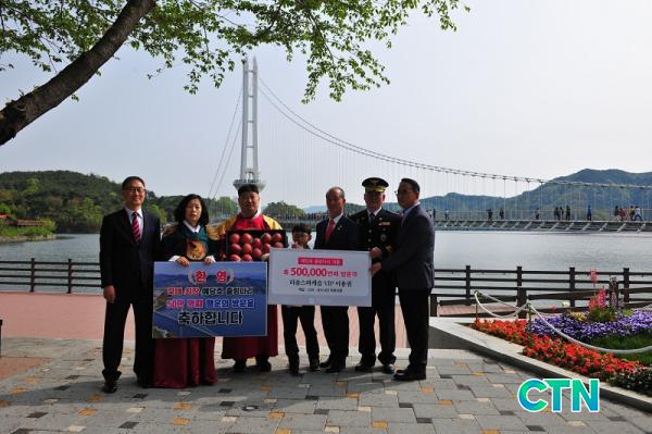 ±ºÀº 50¸¸¹øÂ° ¹æ¹®°´À¸·Î ¼±Á¤µÈ °¡Á·¿¡°Ô ÃàÇÏ ²É´Ù¹ß°ú ¿¹»ê»ç°ú¸¦ ÁõÁ¤ÇÏ°í ¿ëÆ÷¸¦ ÀÔ°í ÇÔ²² ±â³ä»çÁøÀ» Âï´Â µî ¹æ¹®À» ȯ¿µÇß´Ù. ¶ÇÇÑ ¿¹»ê±º ¼ÒÀç ¿Âõ½ºÆÄ½Ã¼³ÀÎ ´ö»ê½ºÆÄij½½(ÃÑÁö¹èÀÎ Á¶»ó·¡)¿¡¼µµ °´½Ç¡¤½ºÆÄ¡¤Á¶½Ä VIP ¹«·áÀÌ¿ë±ÇÀ» ÁõÁ¤ÇÏ°í ¹æ¹®°´À» ÃàÇÏÇß´Ù.