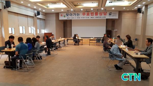 À̳¯ ´ëÀü½Ã¿¡ À§Ä¡ÇÑ ¹ý¹«¹ýÀÎ À¯¾Ø¾ÆÀÌ ¼Ò¼Ó 10¸íÀÇ º¯È£»ç°¡ Àç´É±âºÎ·Î Âü¼®ÇØ 50¿©¸íÀÇ Áֹεé°ú ¹ý·ü °íÃæÀ» Ç®±â À§ÇÑ »ó´ãÀ» ³ª´³´Ù.